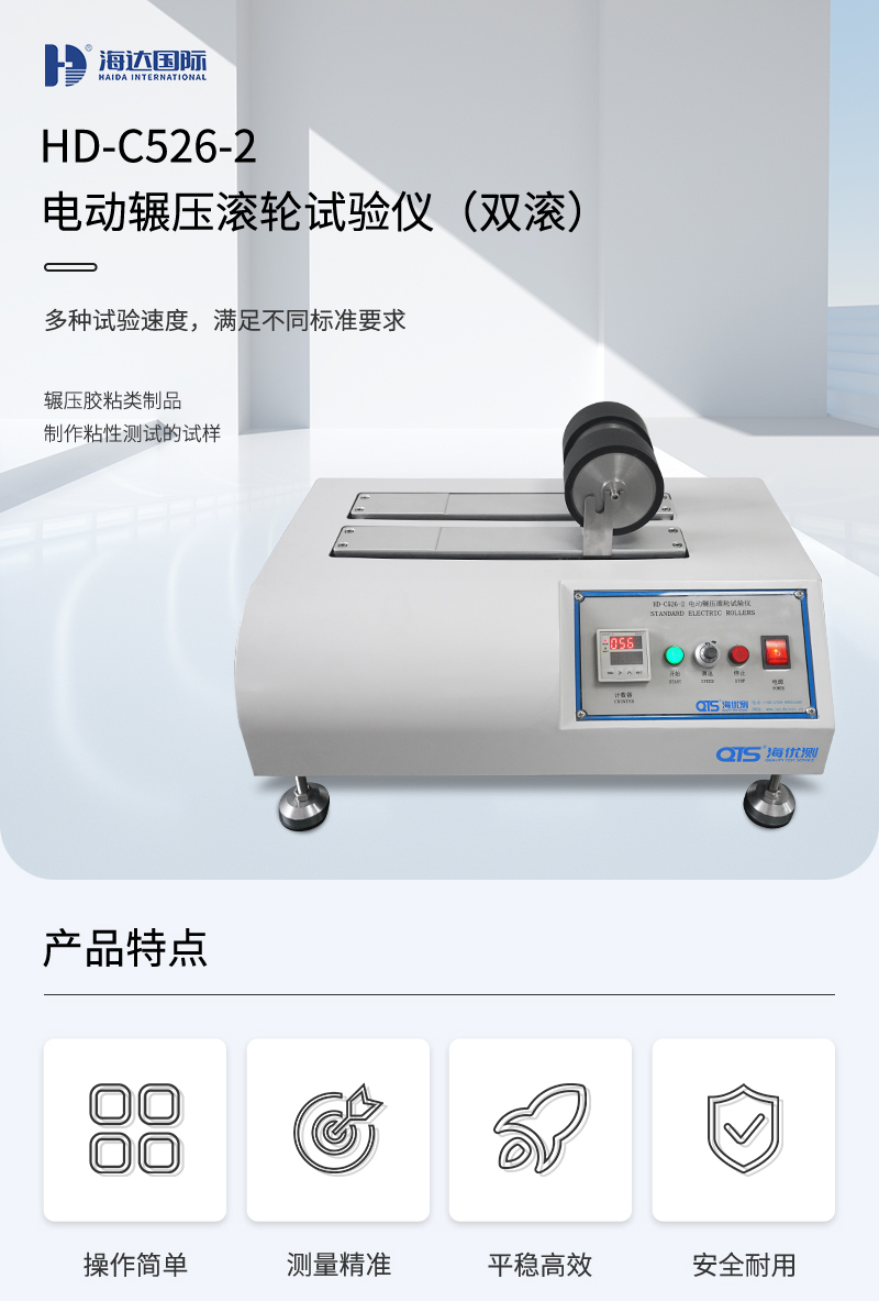 電動輾壓滾輪試驗儀專業(yè)適用于塑料薄膜、膠粘劑、膠粘帶、不干膠、醫(yī)用貼劑、離型紙、保護膜、金屬箔、隔膜、無紡布、橡膠、紙張等產(chǎn)品的剝離強度、持粘性。有單輥、雙輥、三輥不同規(guī)格。