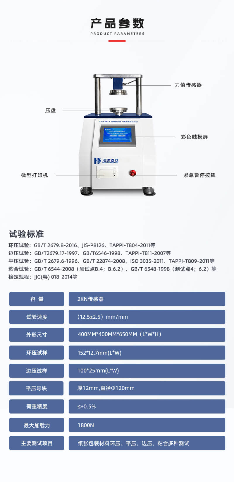 平壓試驗:GB/T 2679.6-1996、GB/T 22874-2008、ISO 3035-2011、TAPPI-T809-2011等