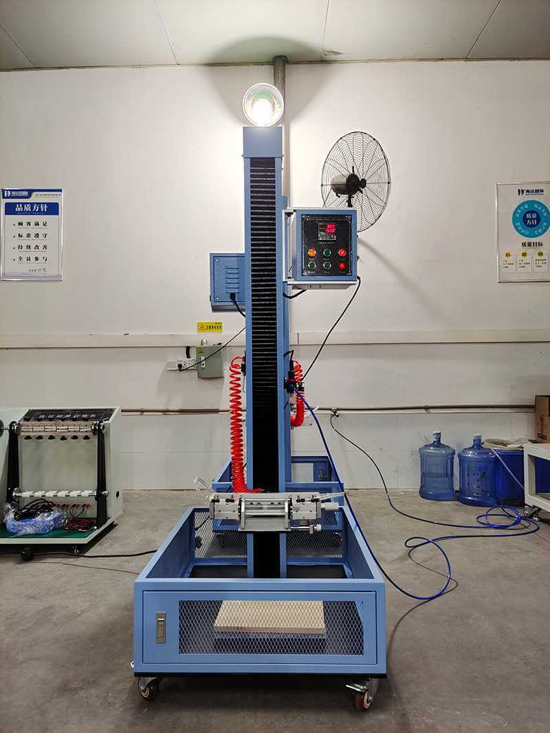 該產(chǎn)品針對適用于行動(dòng)電話(手機(jī))、手機(jī)鋰電池、對講機(jī)、電子詞典、CD/MD/MP3等小型消費(fèi)類電子制品及零部件之自由落下試驗(yàn)。 本機(jī)采用氣動(dòng)結(jié)構(gòu),將被測試件置于專用夾具(可調(diào)行程)夾牢,按下跌落鍵,氣缸松開,試件將作自由落體試驗(yàn),跌落高度可作上下調(diào)整,并附有高度標(biāo)尺,可得知試件跌落高度,多種跌落地板供選用,可滿足不同試驗(yàn)標(biāo)準(zhǔn)。