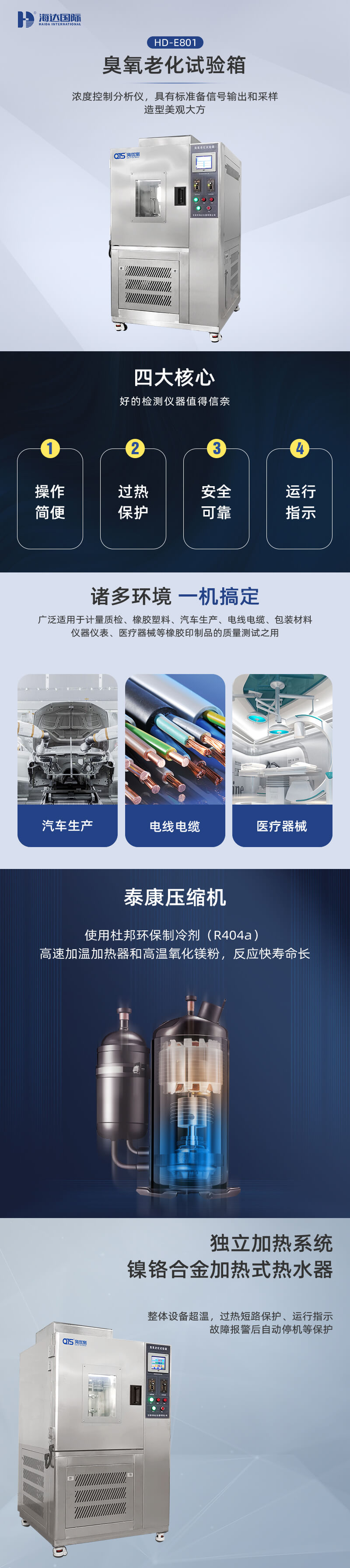 臭氧老化試驗箱,專業適用于計量質檢、橡膠塑料、汽車生產、電線電纜、包裝材料、儀器儀表、醫療器械、民用核能、民用航空、高等院校、科研實驗所、商檢仲裁、技術監督部門等橡膠印制品的質量測試之用。