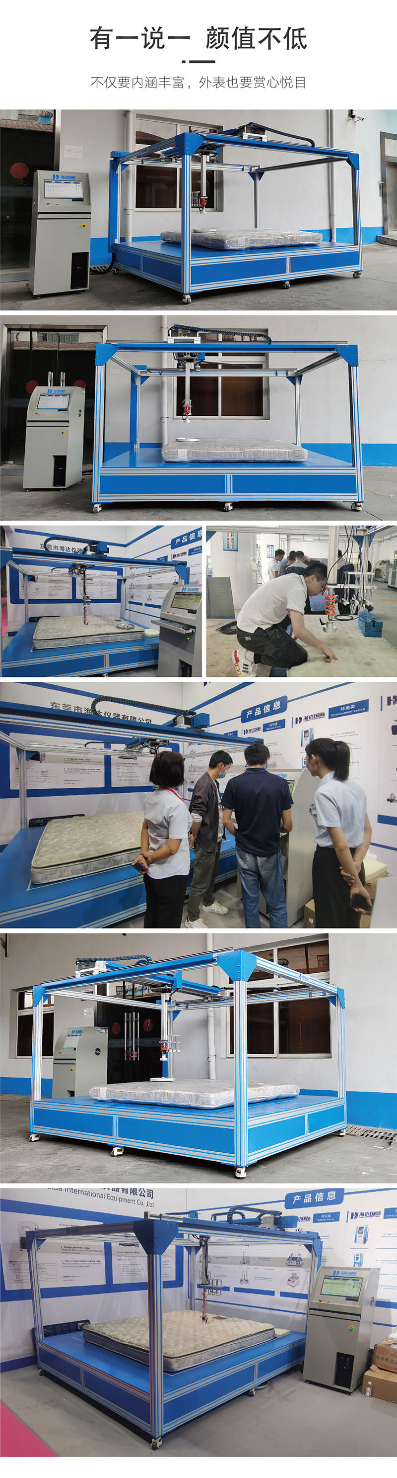 床墊貼合度綜合試驗機用于對家庭、酒店、旅館、飯店等場合使用的彈簧軟床墊和發泡型床墊進行出廠成品檢測,對床墊硬度和滯后損失率及貼合度進行測試,測試完成后根據測試評定試樣的等級。